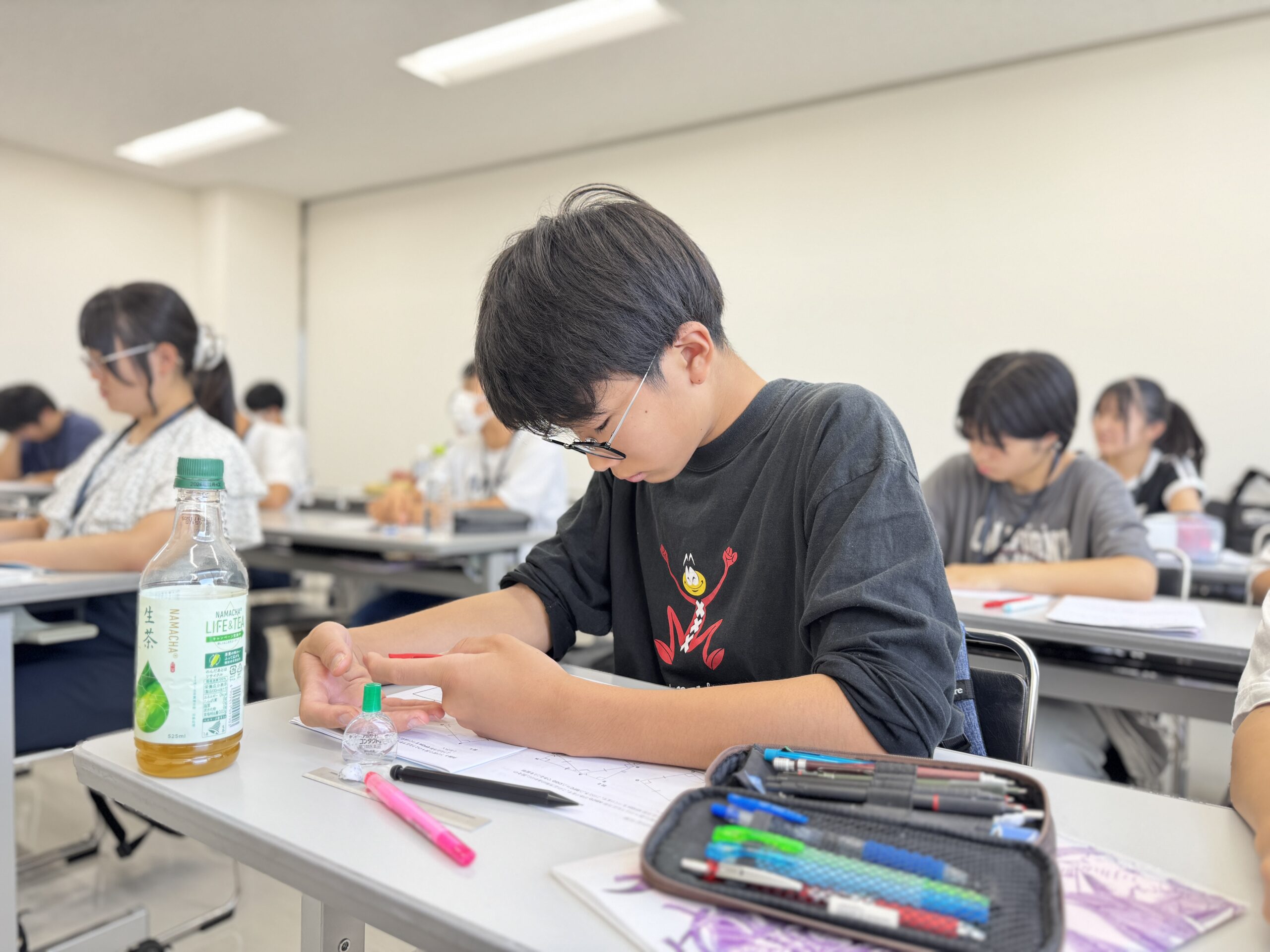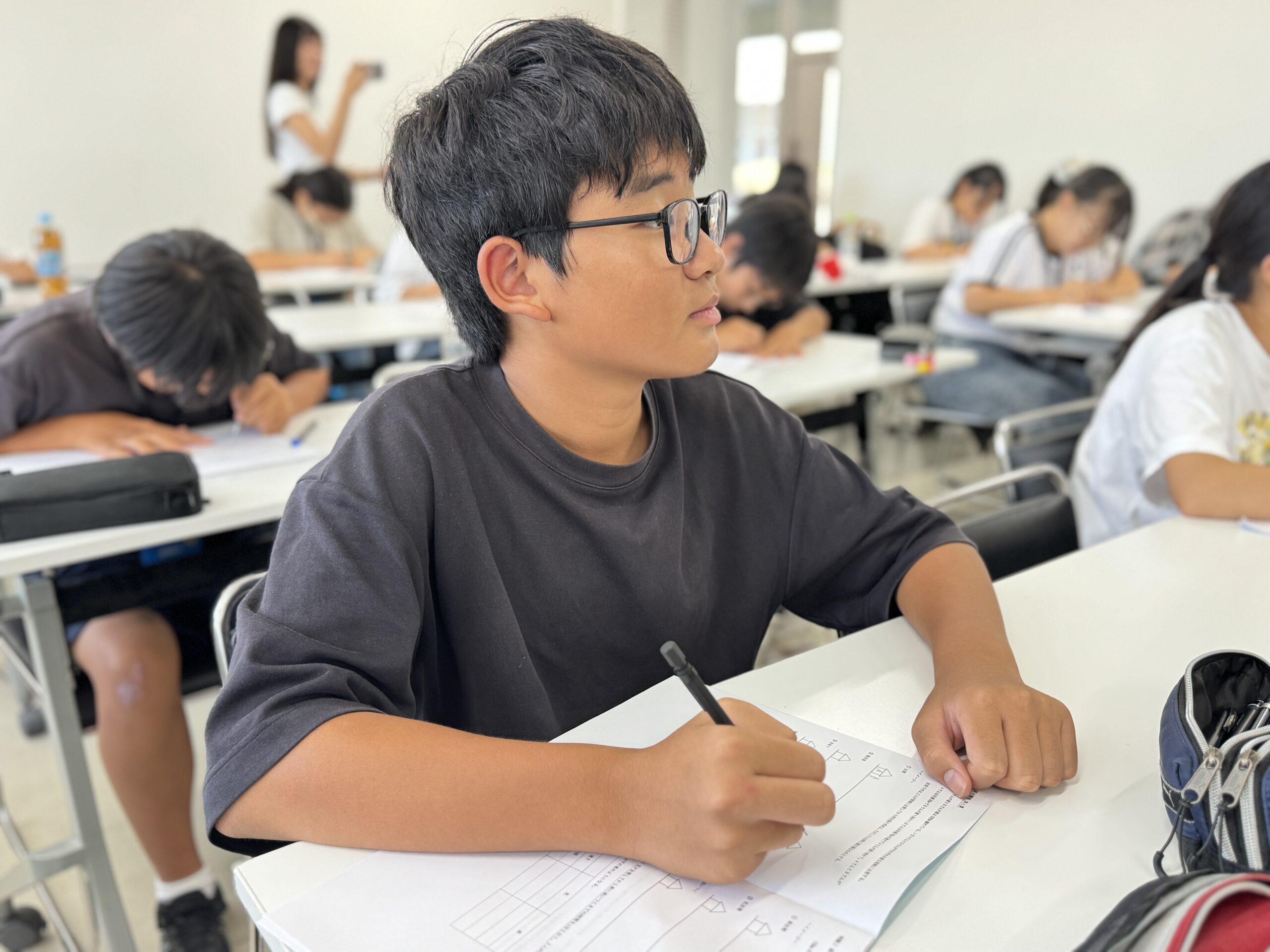 僕は中学二年生の春に進学塾unitに入塾しました。まず僕が以前に通っていた塾との違いに驚かされました。具体的には積極的に参加できる授業の雰囲気と授業の質です。