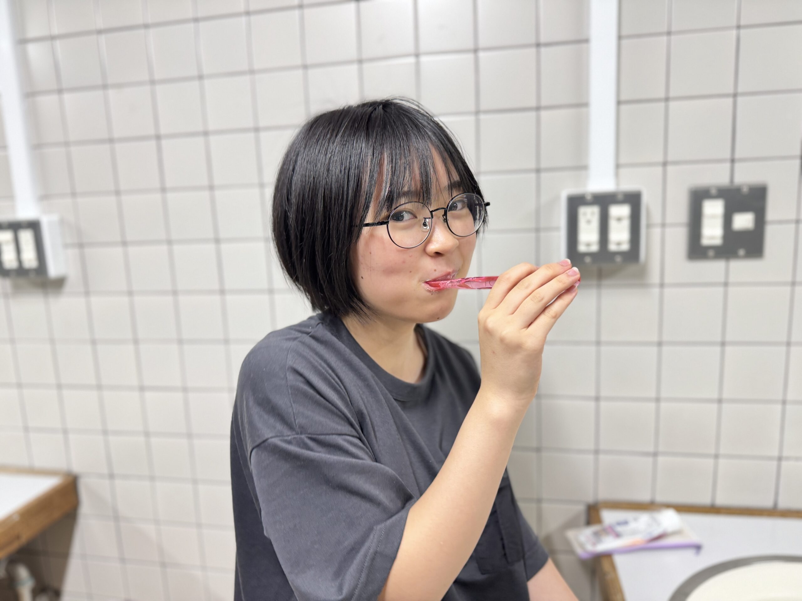 | 好きなおやつ | こしあん(いちご大福、赤福)、カラムーチョ、スッパムーチョ、カール、うまい棒 |