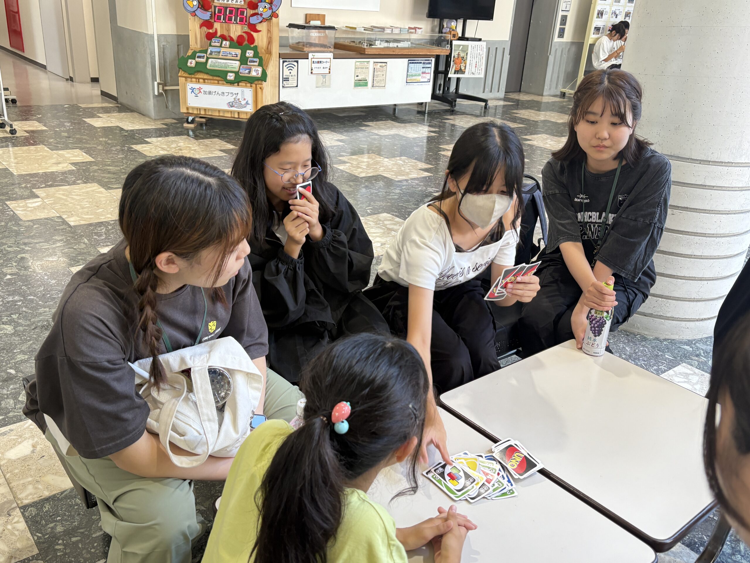 私がunitに入る前、「塾」という場所には、成績を上げるためにガッツリ勉強するのがメインだというイメージを持っていて、少し抵抗がありました。 そして、小学5年生の夏休み、私は初めてunitに行きました。最初はやっぱり怖くて、少し緊張していましたが、部屋に入った瞬間、笑顔で招き入れてくださる先生方や、楽しく勉強している生徒たちの姿を見て、これまで抱いていたイメージが壊され、「塾」とは本当はどのような場所かを理解することができました。 後に「ここなら楽しく通える」と思い、unitに通い始めました。